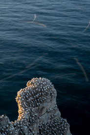Und natürlich die Küste. Dort, wo die Klippen hunderte Meter steil ins Meer abfallen, tobt im Sommer das Leben: Basstölpel mit ihren schneeweissen Flügeln, elegant im Wind segelnd; Dreizehenmöwen, die ununterbrochen kreischend ein- und ausfliegen; Trottellummen und Tordalke in den Felsen stehend und dazwischen – mit etwas Glück – auch der eine oder andere Papageitaucher, der schwerfällig flatternd über die Wellen kommt. Diese Steilküsten gehören zu den grössten Seevogelkolonien Europas. Millionen von Vögeln nutzen die fast senkrechten Wände, um hier ihre Jungen grosszuziehen.